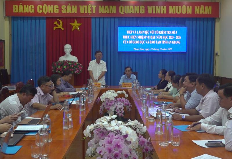 Ngày 25/11/2025, UBND xã Thoại Sơn đã tiếp và làm việc với Tổ kiểm tra số 3 của Sở Giáo dục và Đào tạo tỉnh An Giang về tình hình thực hiện nhiệm vụ đầu năm học 2025 – 2026 trên địa bàn. Đoàn công tác do ông Cao Quốc Điện – Phó Giám đốc Sở Giáo dục và Đào tạo tỉnh An Giang làm trưởng đoàn.