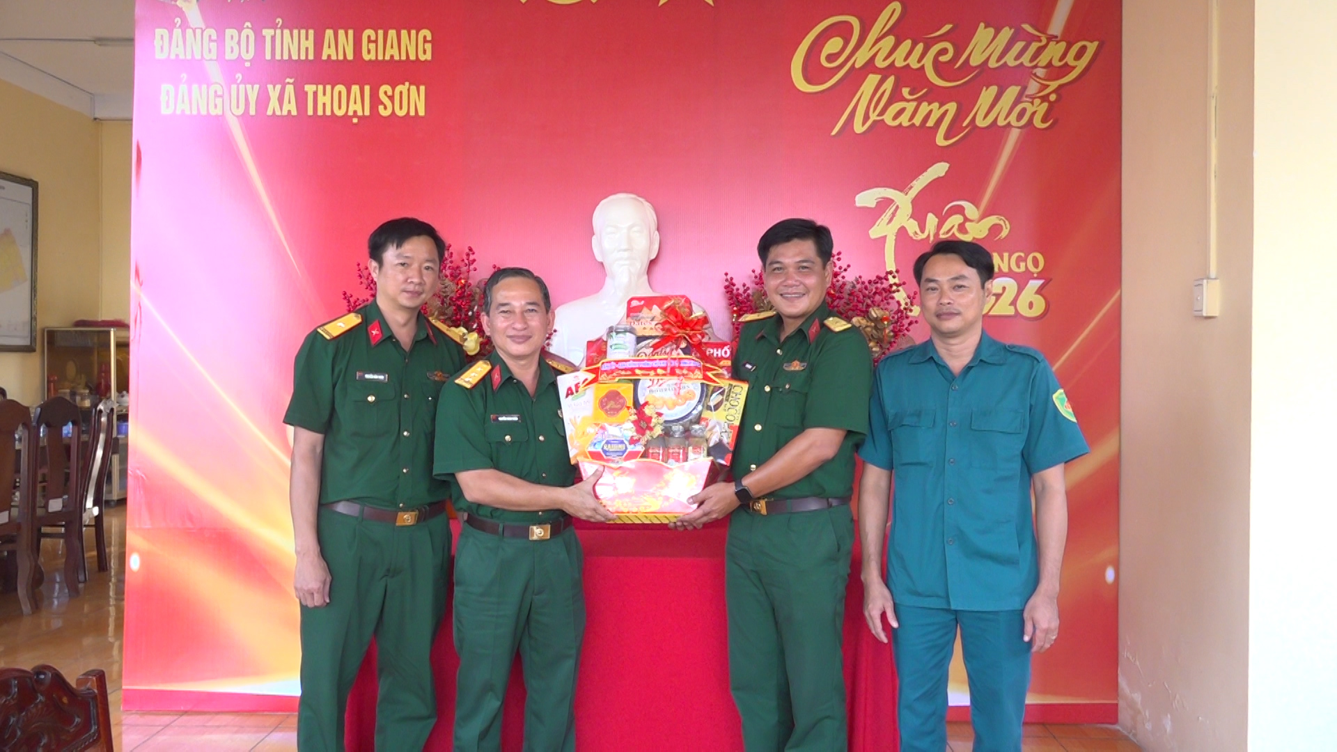 Bộ Chỉ huy Quân sự tỉnh An Giang đã tổ chức đoàn công tác đến thăm, chúc Tết Đảng ủy xã và Ban Chỉ huy Quân sự xã Thoại Sơn