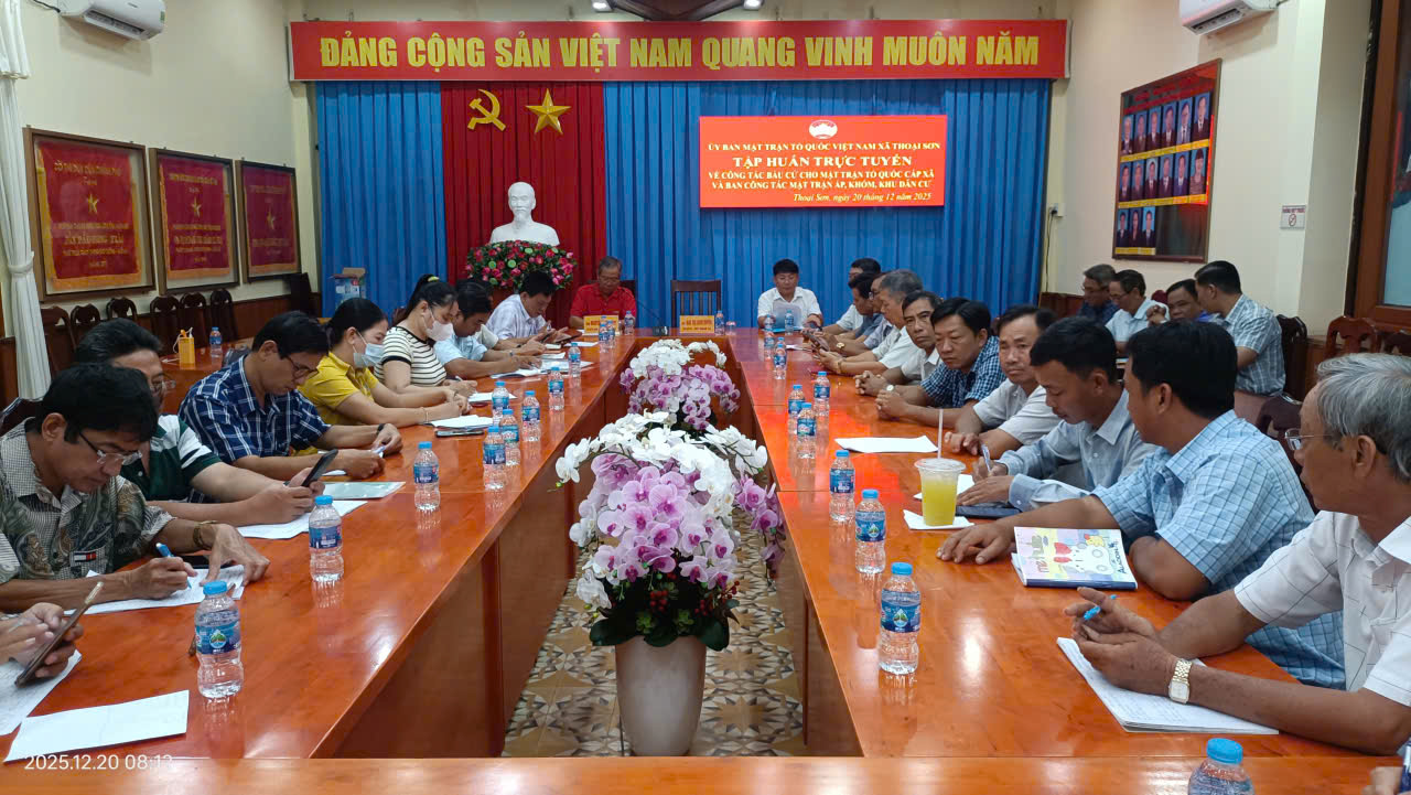 Tham dự hội nghị tại điểm cầu xã Thoại Sơn có đồng chí Nguyễn Ngọc Huy – Chủ tịch Ủy ban MTTQ Việt Nam xã, cùng các thành viên Ban Thường trực MTTQ xã và đại diện Ban Công tác Mặt trận các ấp, khóm, khu dân cư.