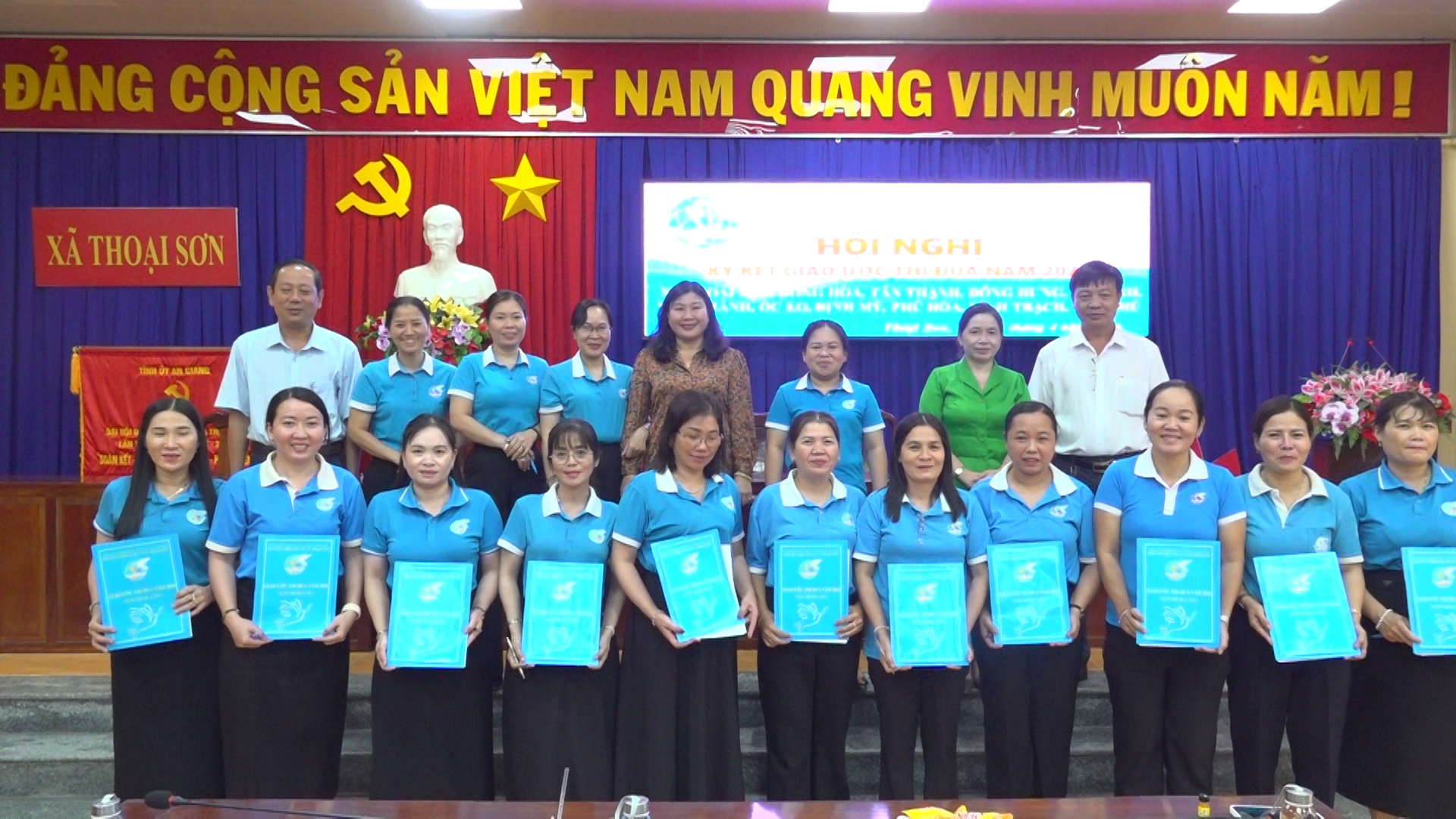 Ngày 23/4/2026, tại Đảng ủy xã Thoại Sơn, Cụm thi đua số 2 – Hội Liên hiệp Phụ nữ tỉnh An Giang tổ chức hội nghị ký kết giao ước thi đua năm 2026. Tham dự hội nghị có đồng chí Trương Thanh Thúy – Tỉnh ủy viên, Phó Chủ tịch Ủy ban MTTQ Việt Nam tỉnh, Chủ tịch Hội Liên hiệp Phụ nữ tỉnh An Giang; đồng chí Lê Bích Phượng – Tỉnh ủy viên, Bí thư Đảng ủy, Chủ tịch HĐND xã Thoại Sơn; đồng chí Dương Minh Hùng – Phó Bí thư Thường trực Đảng ủy xã Thoại Sơn cùng đại diện lãnh đạo Hội Liên hiệp Phụ nữ 11 xã trong cụm.