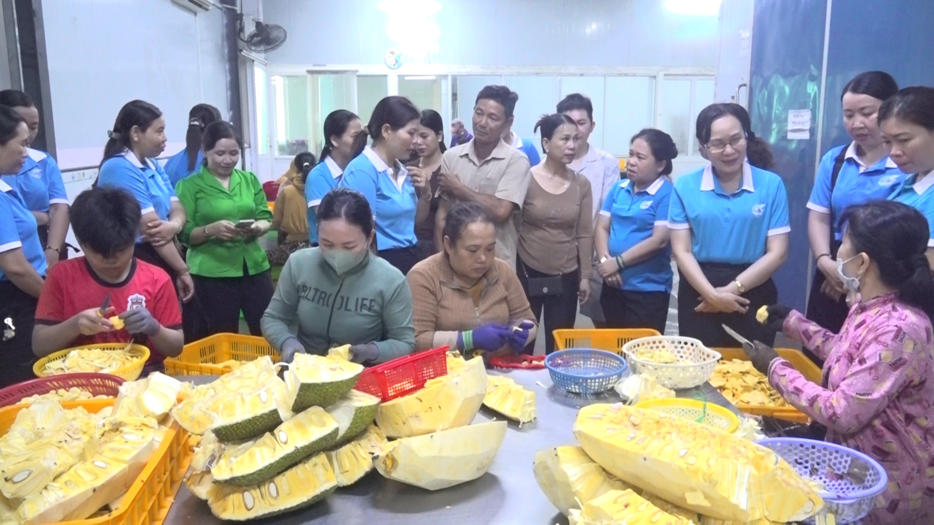 Tham quan mô hình làm mít sấy tại cơ sở Ngây Thu xã Thoại Sơn