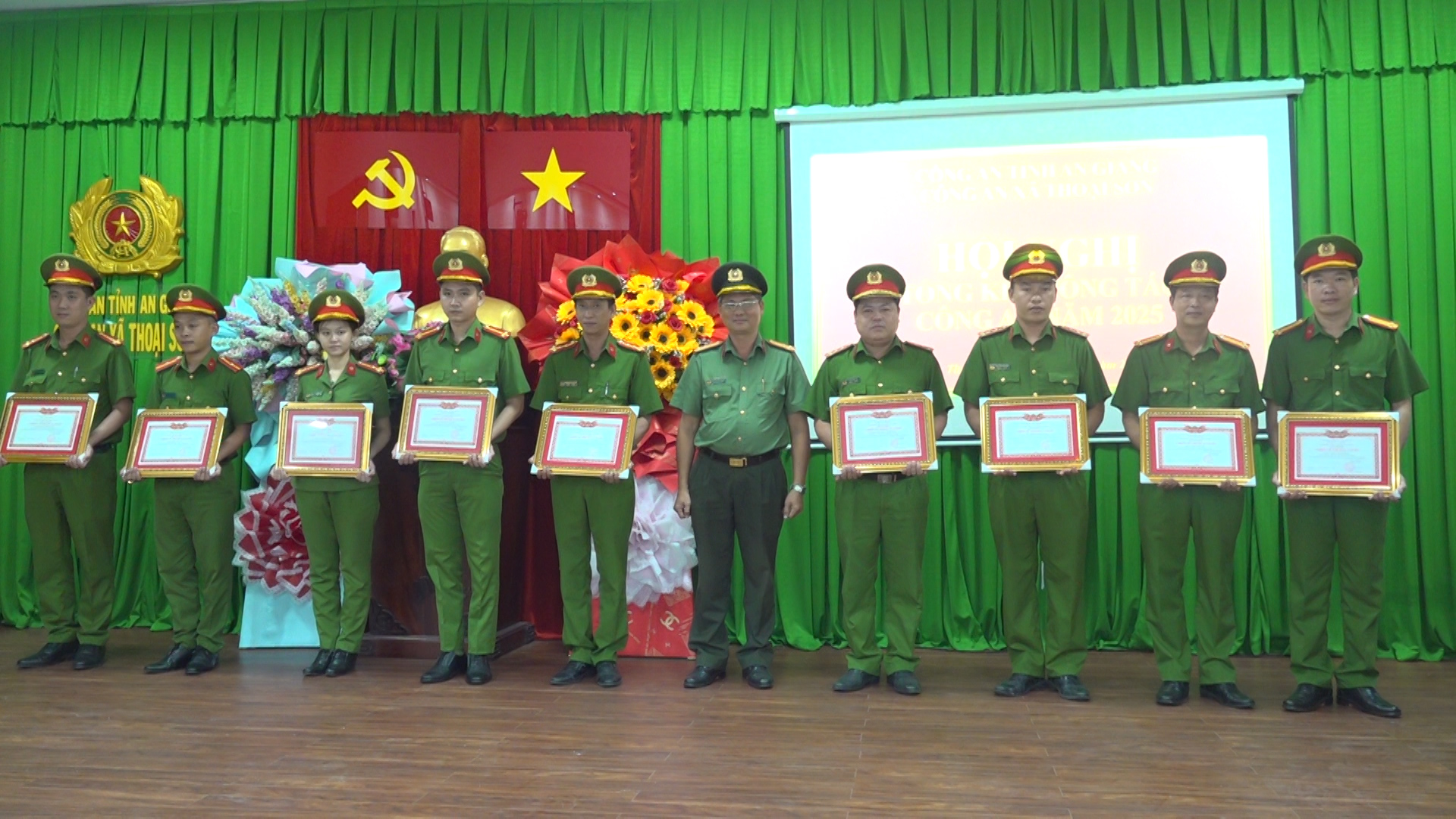 Dịp này, Công an xã Thoại Sơn được công nhận danh hiệu Đơn vị tiên tiến; 09 cá nhân đạt danh hiệu Chiến sĩ thi đua cơ sở, 21 cá nhân đạt danh hiệu Chiến sĩ tiên tiến của Công an tỉnh An Giang. UBND xã Thoại Sơn cũng trao Giấy khen cho 04 tập thể và 07 cá nhân lực lượng tham gia bảo vệ an ninh, trật tự ở cơ sở có thành tích tiêu biểu trong năm 2025.