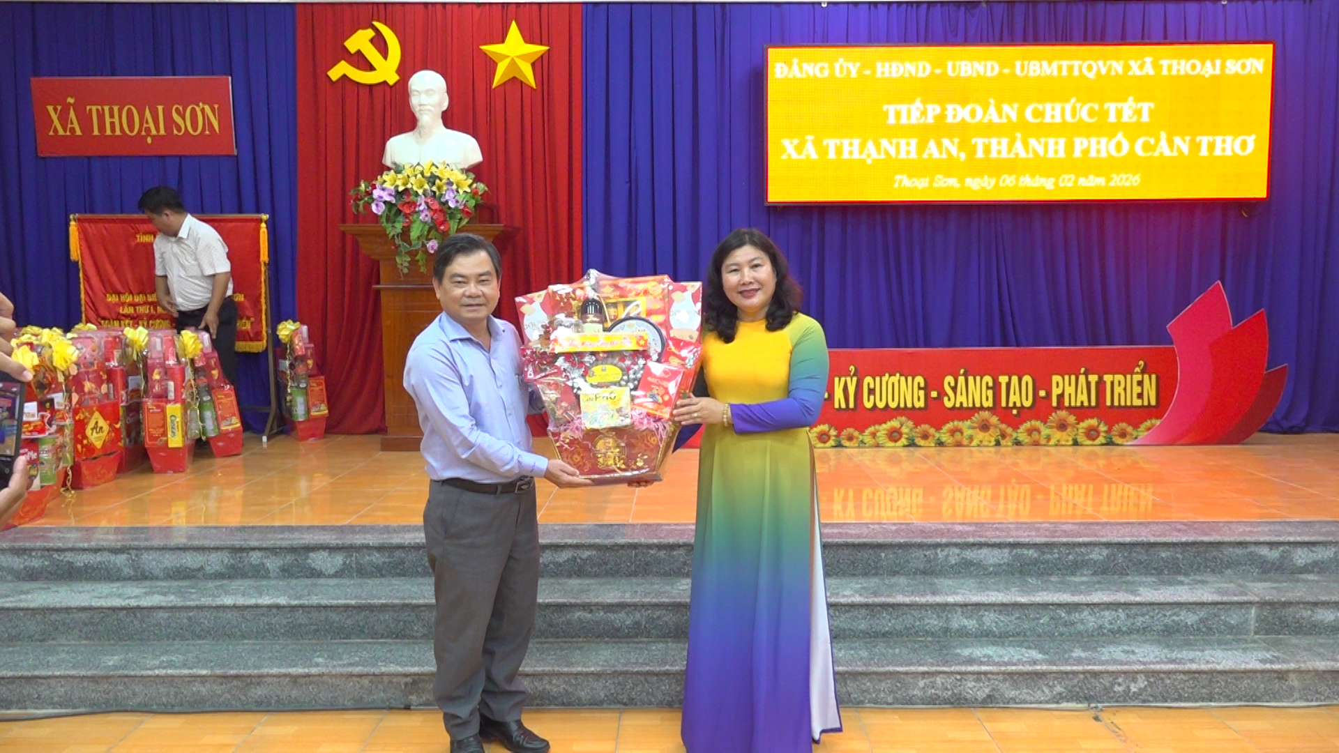 Nhân dịp Tết Nguyên đán Bính Ngọ năm 2026, ngày 6/2/2026, Đoàn công tác của Đảng ủy, HĐND, UBND, Ủy ban MTTQ Việt Nam xã Thạnh An, thành phố Cần Thơ đã đến thăm, chúc Tết Đảng ủy, HĐND, UBND, Ủy ban MTTQ Việt Nam xã Thoại Sơn. Đoàn do đồng chí Đoàn Văn Dũng – Bí thư Đảng ủy xã Thạnh An làm Trưởng đoàn.Tiếp và làm việc với đoàn có đồng chí Lê Bích Phượng – Tỉnh ủy viên, Bí thư Đảng ủy xã Thoại Sơn, cùng các đồng chí trong Ban Thường vụ Đảng ủy, lãnh đạo HĐND, UBND, UBMTTQ Việt Nam xã.