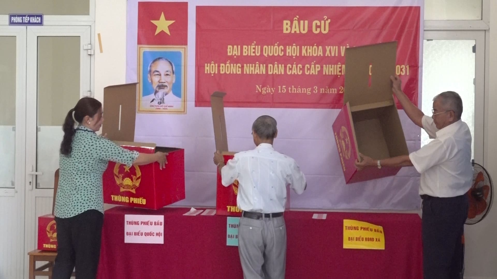 Cử tri kiểm tra thùng phiếu và tiến hành niêm yết