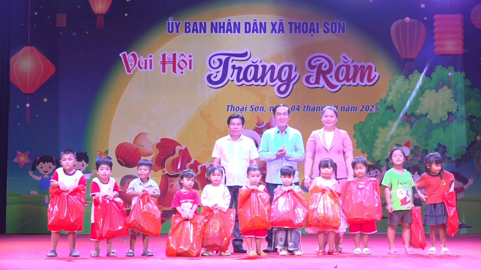 Hòa chung không khí tưng bừng, phấn khởi của thiếu nhi cả nước chào đón Tết Trung thu năm 2025, ngày 4/10, Ủy ban nhân dân xã Thoại Sơn đã tổ chức chương trình “Vui hội trăng rằm” dành cho các em thiếu nhi trên địa bàn. Đây là hoạt động thiết thực nhằm nâng cao trách nhiệm của gia đình, nhà trường, cộng đồng và toàn xã hội trong công tác bảo vệ, chăm sóc và giáo dục trẻ em; đồng thời thể hiện sự quan tâm sâu sắc của cấp ủy, chính quyền đối với thế hệ măng non – những chủ nhân tương lai của quê hương.