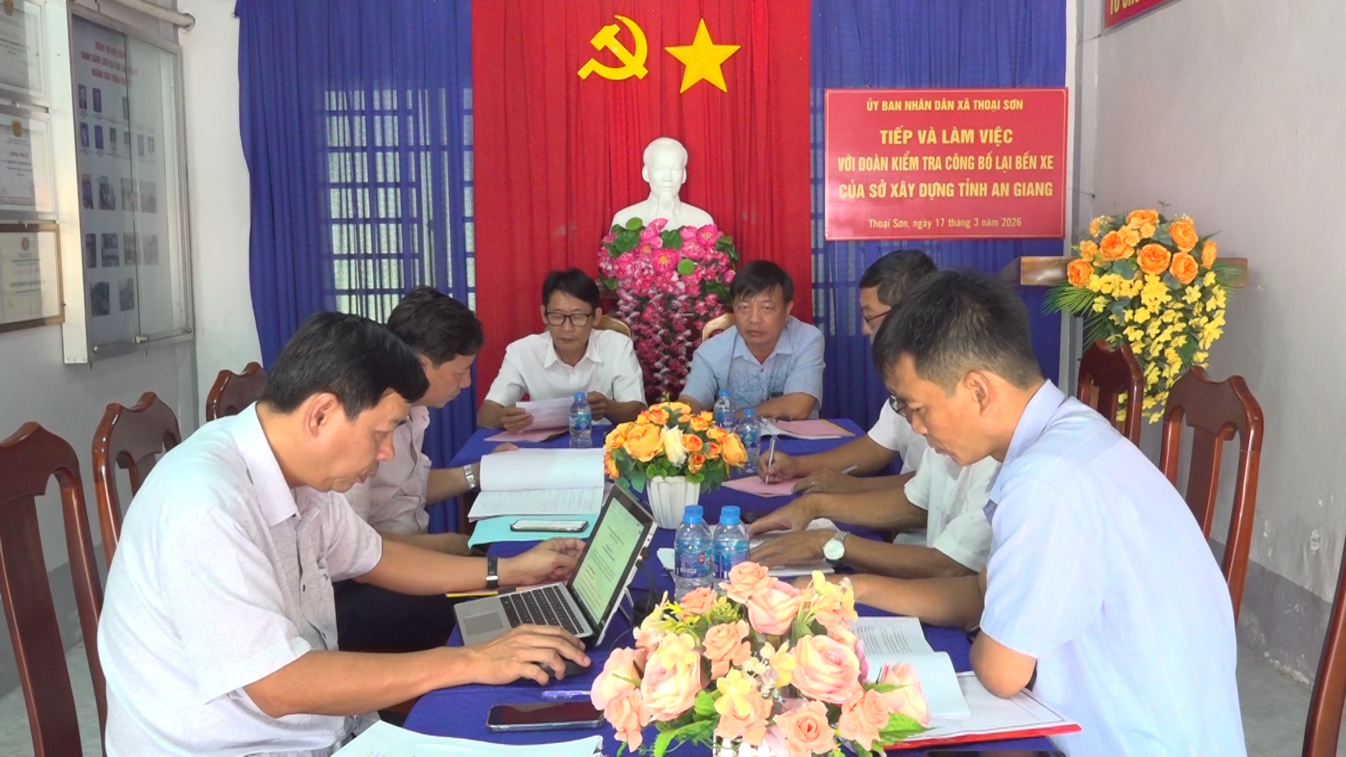 Ngày 17/3/2026, Đoàn công tác của Sở Xây dựng tỉnh An Giang do ông Phạm Văn Nam – Trưởng phòng Quản lý vận tải làm trưởng đoàn đã đến kiểm tra việc công bố lại hoạt động bến xe trên địa bàn xã Thoại Sơn. Tiếp và làm việc với đoàn có ông Phạm Thế Hùng – Phó Chủ tịch UBND xã Thoại Sơn; cùng đại diện lãnh đạo Trung tâm Dịch vụ tổng hợp xã và Ban điều hành bến xe Thoại Sơn.