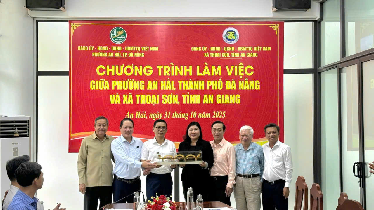 Thay mặt Đảng ủy, HĐND, UBND, UBMTTQ Việt Nam và Nhân dân xã Thoại Sơn, Bí thư Đảng ủy xã Thoại Sơn Lê Bích Phượng đã phát biểu, gửi lời tri ân sâu sắc đến các đồng chí lãnh đạo, nguyên lãnh đạo quận Sơn Trà (cũ) và phường An Hải, phường Sơn Trà về sự đón tiếp thân tình, gần gũi như những người anh em lâu ngày gặp lại. Đồng chí Bí thư nhấn mạnh rằng: Dù cách nhau hàng nghìn cây số, nhưng giữa xã Thoại Sơn, phường Sơn Trà và phường An Hải luôn tồn tại một sợi dây vô hình của nghĩa Đảng, nghĩa đồng bào, cùng hướng về cội nguồn chung của dân tộc.
