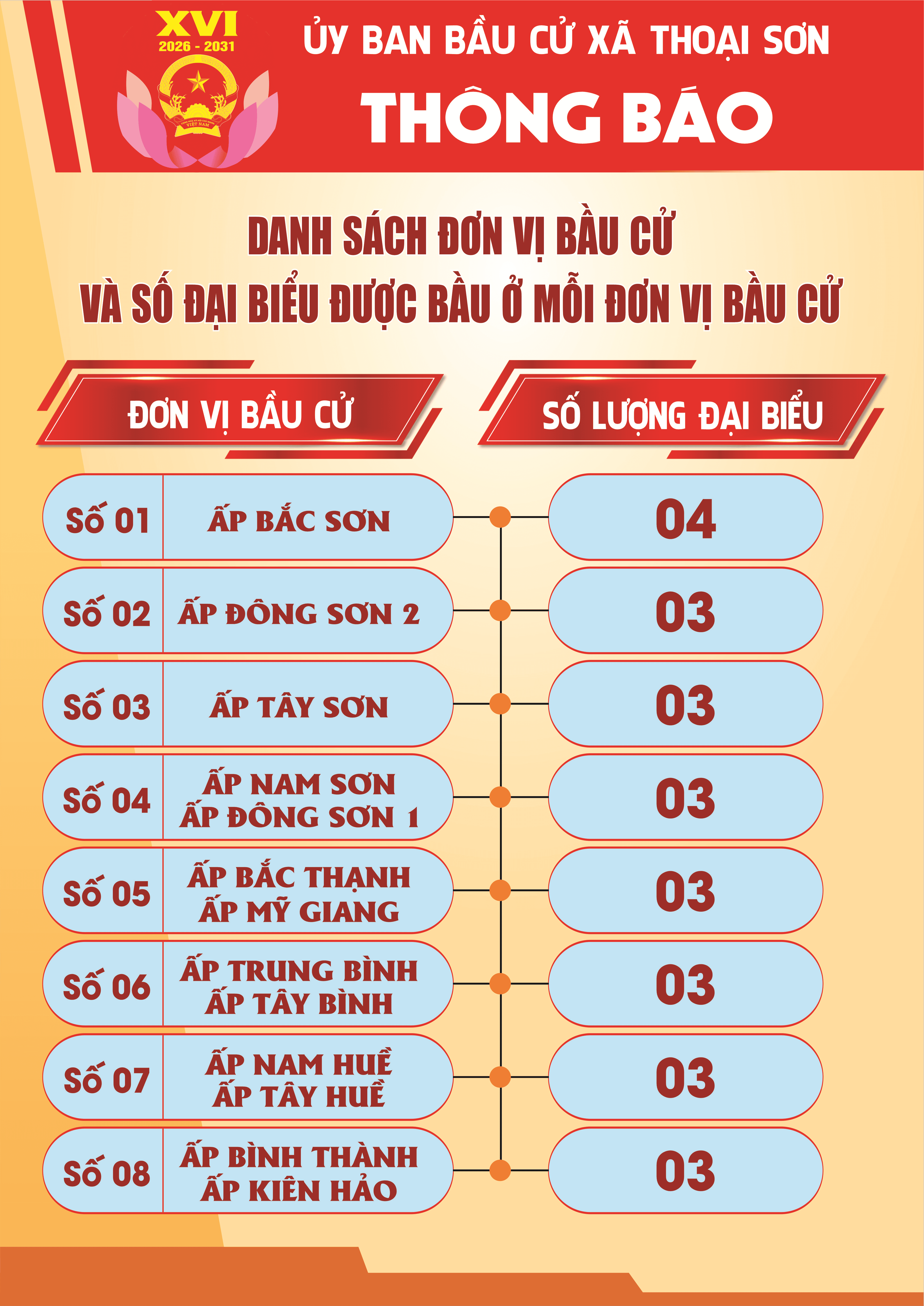 Thông báo danh sách đơn vị bầu cử và số đơn vị được bầu ở mỗi đơn vị bầu cử