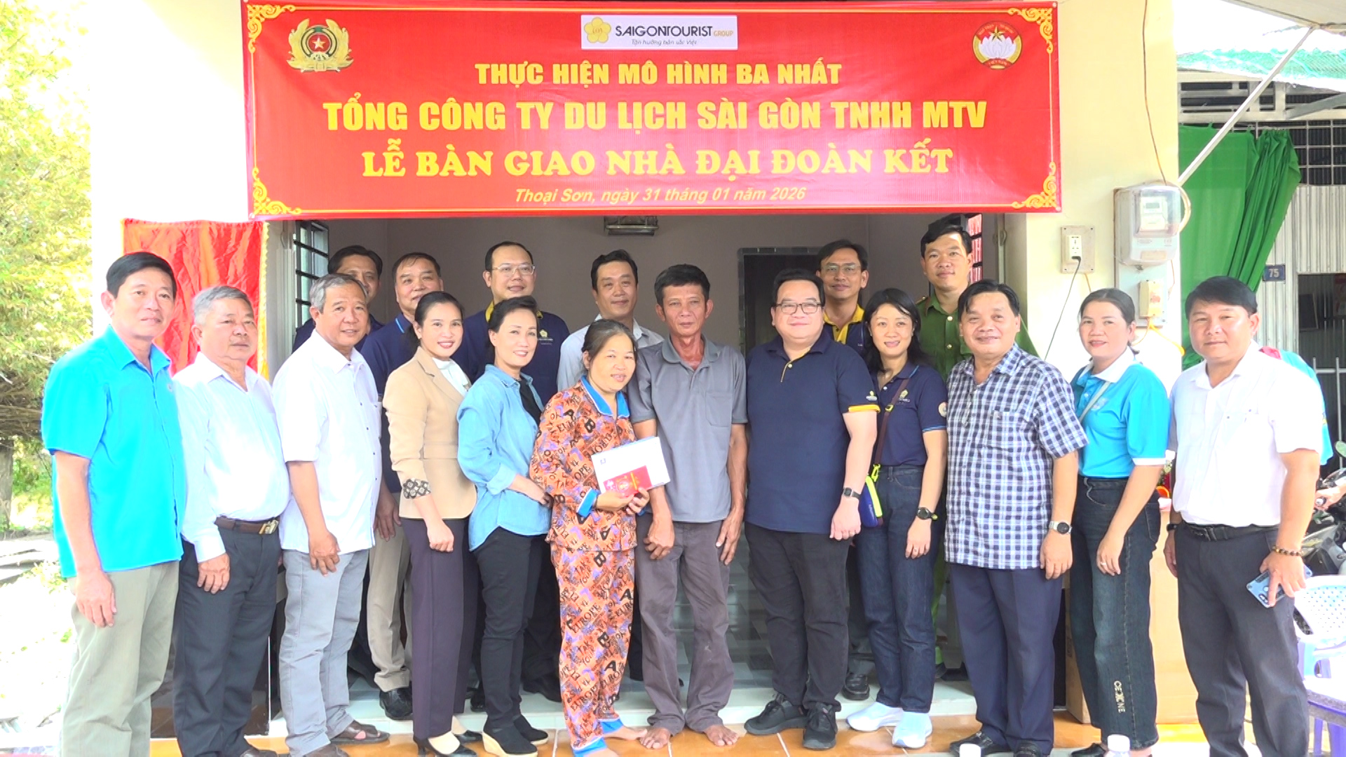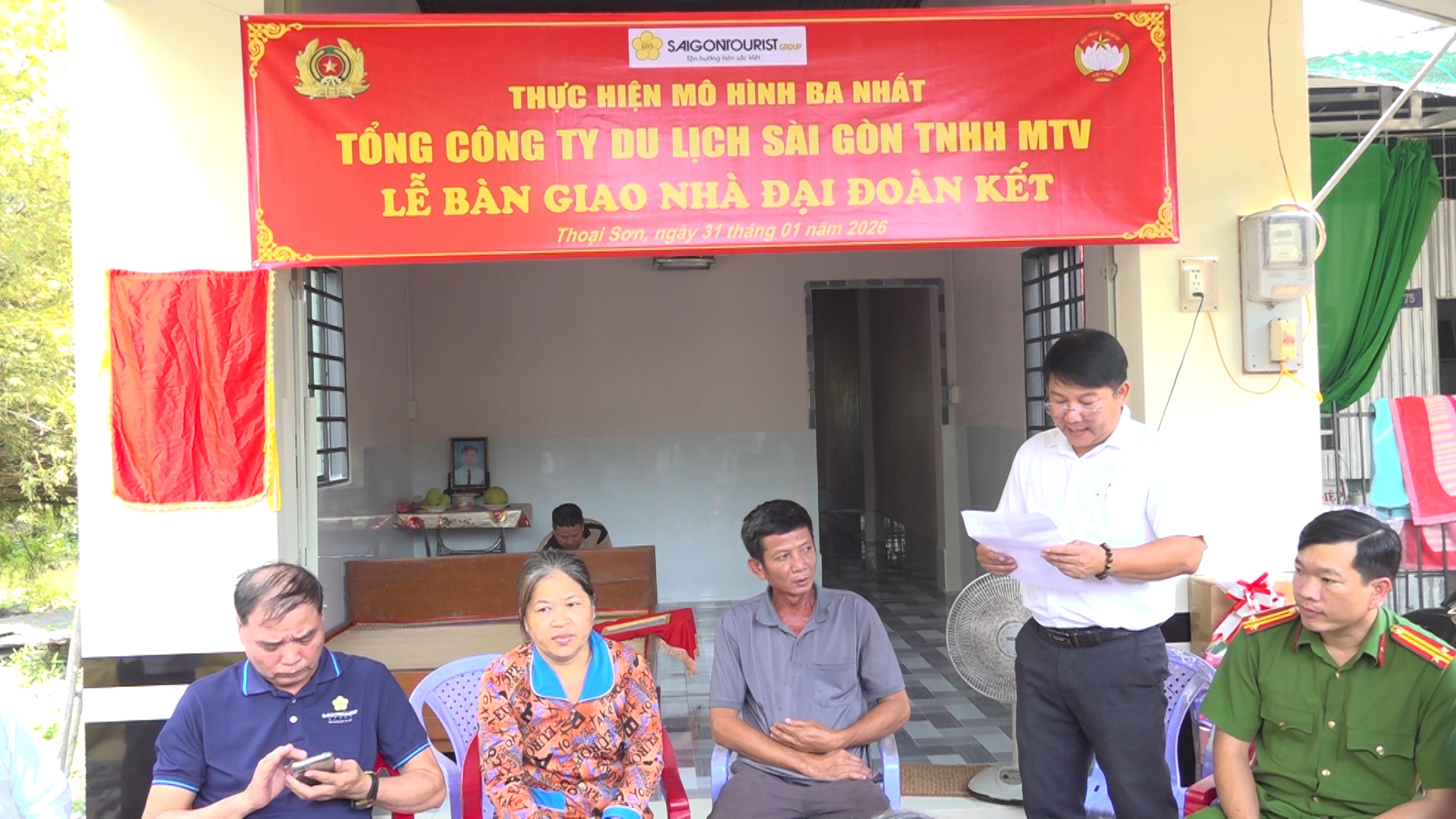 Nhằm thiết thực chăm lo an sinh xã hội, góp phần giúp các hộ dân có hoàn cảnh đặc biệt khó khăn ổn định cuộc sống, ngày 31/01/2026, Ủy ban Mặt trận Tổ quốc Việt Nam xã Thoại Sơn phối hợp cùng Công an xã Thoại Sơn tổ chức lễ trao Nhà Đại đoàn kết cho hộ dân có hoàn cảnh khó khăn về nhà ở trên địa bàn xã.